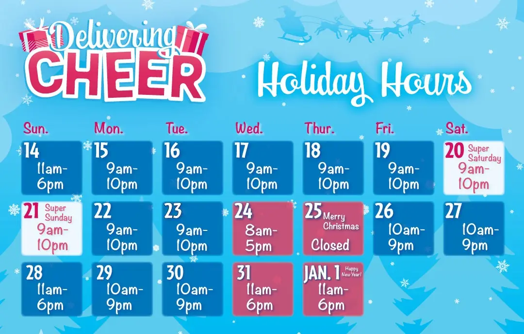 - Tue, Dec 23: 9am-10pm